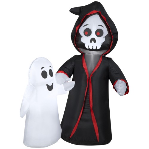 The 4.5 Ft Tall Airblown Reaper And Ghost Light Up Halloween Inflate is a festive outdoor and indoor decoration designed for Halloween. This inflatable decoration features a reaper and ghost design that lights up, adding a spooky and fun element to your Halloween decor.
