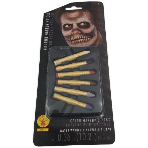 Rubie's Horror Makeup Sticks - 6 Color Makeup Sticks - Washable W/water