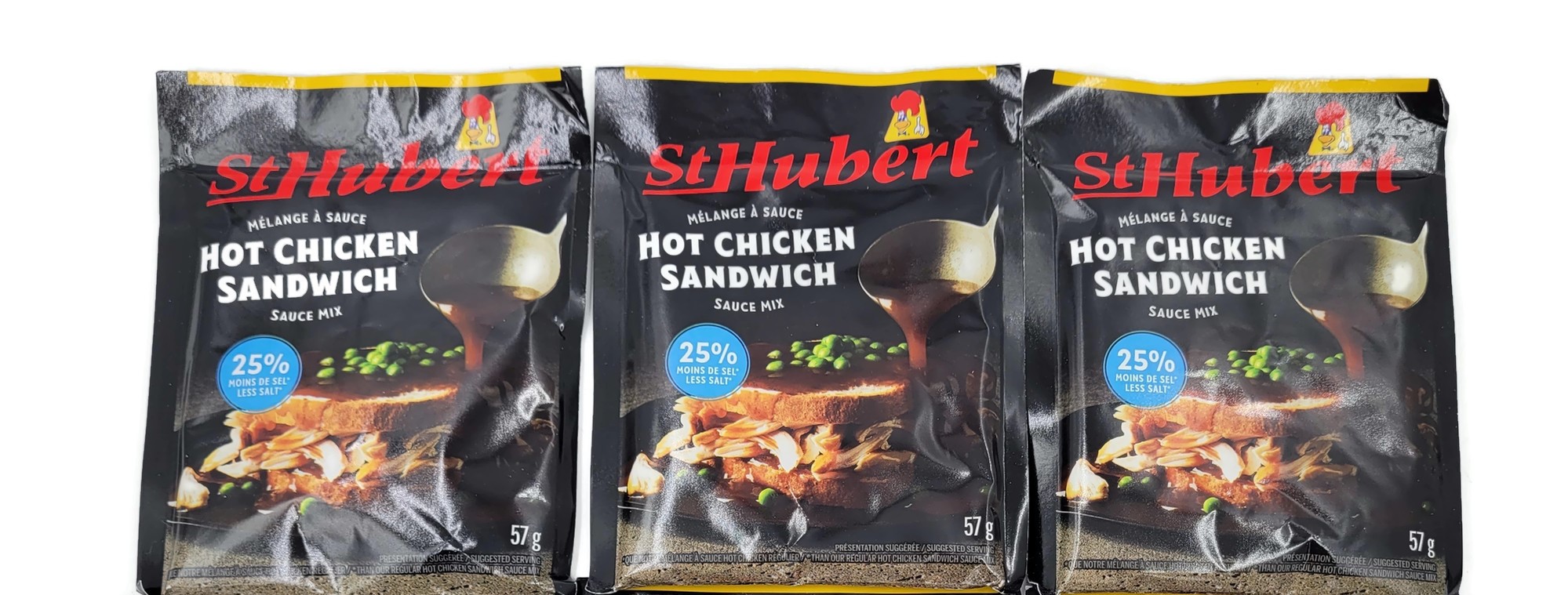 Title : 3 Pack St Hubert Hot Chicken Sandwich 25% Less Salt Gravy Sauce Mix 57gModel : None